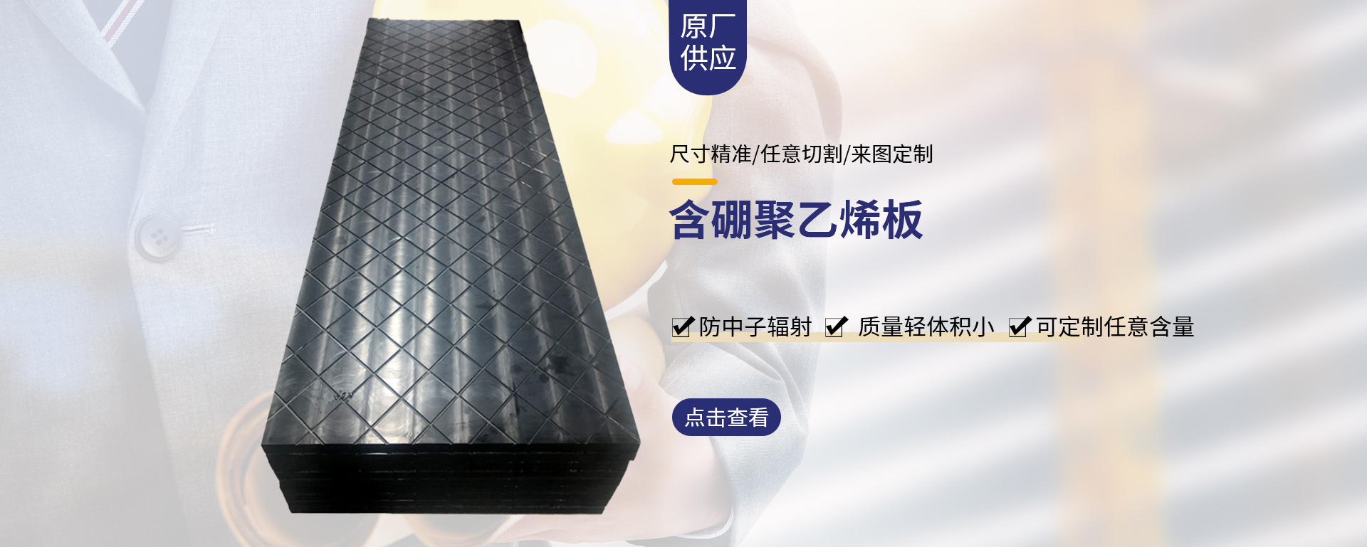 含硼超高分子量聚乙烯板是將碳化硼粉和鉛粉均勻地攪拌在高分子聚乙烯材料當(dāng)中通過高速攪拌、捏合、塑化、熱...